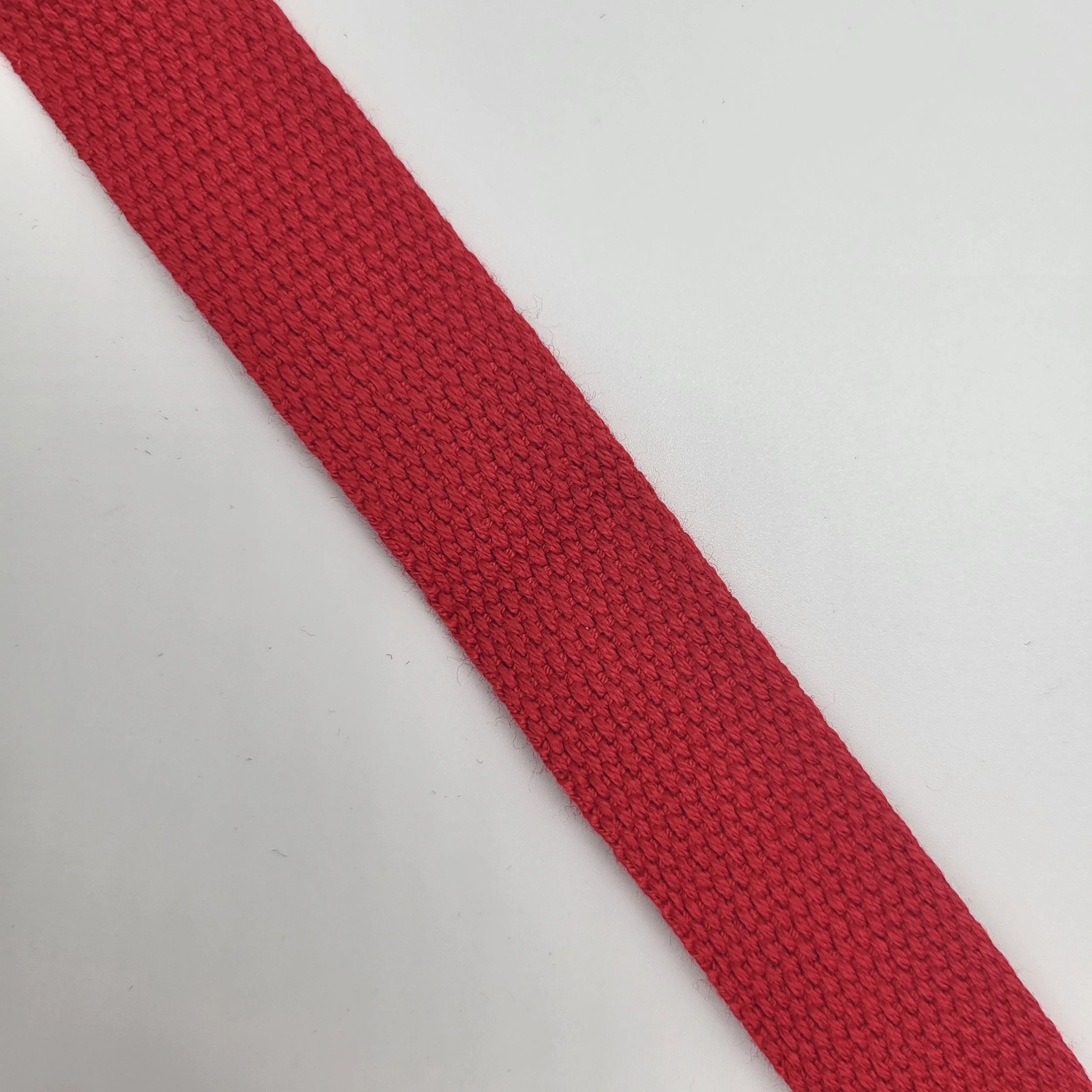 This 25mm cotton webbing in red is a classic plain webbing which will pair with many fabrics and patterns to make the bag of your dreams.