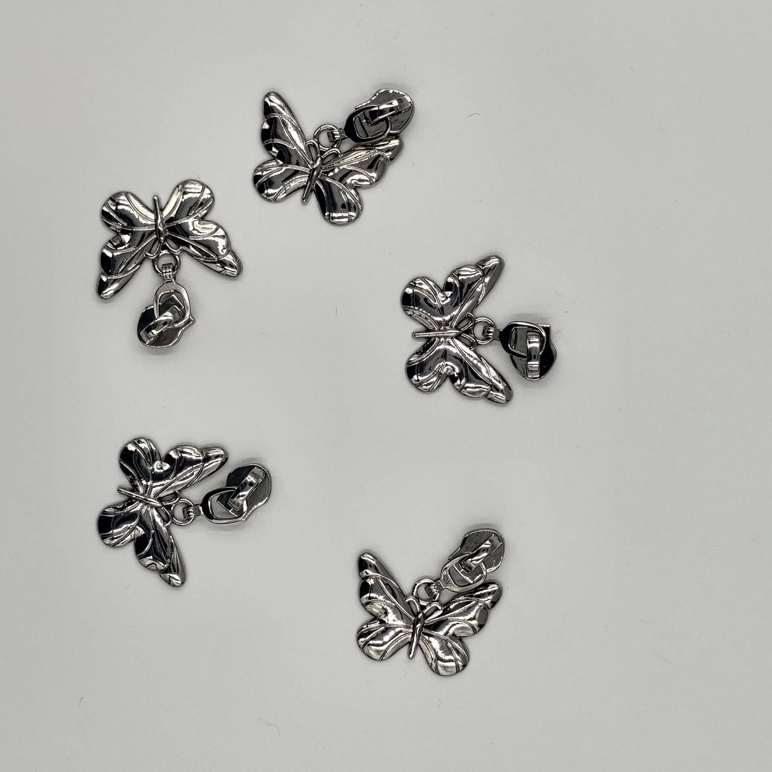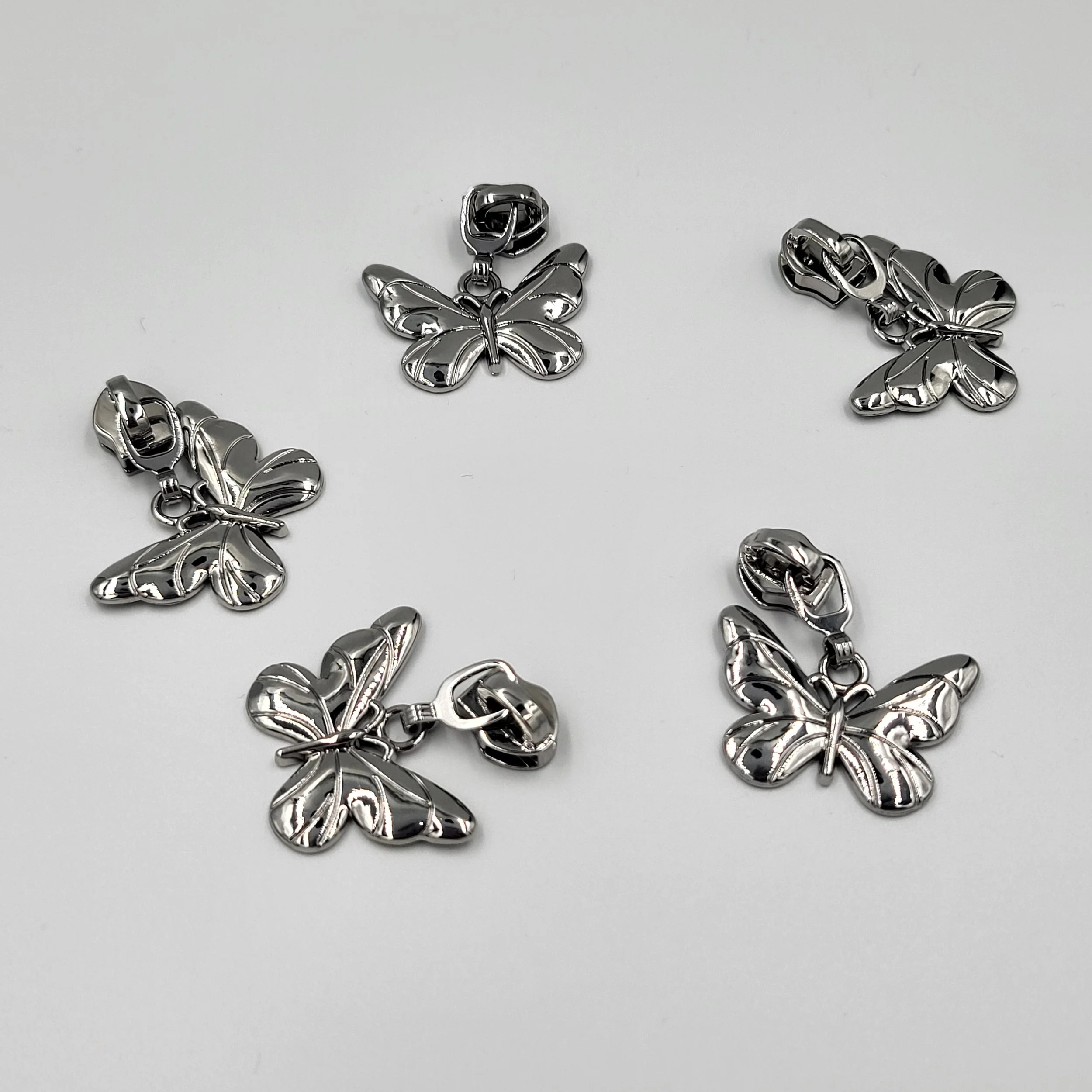The silver finish metal #5 zip pulls will work with our continuous zipper tape.