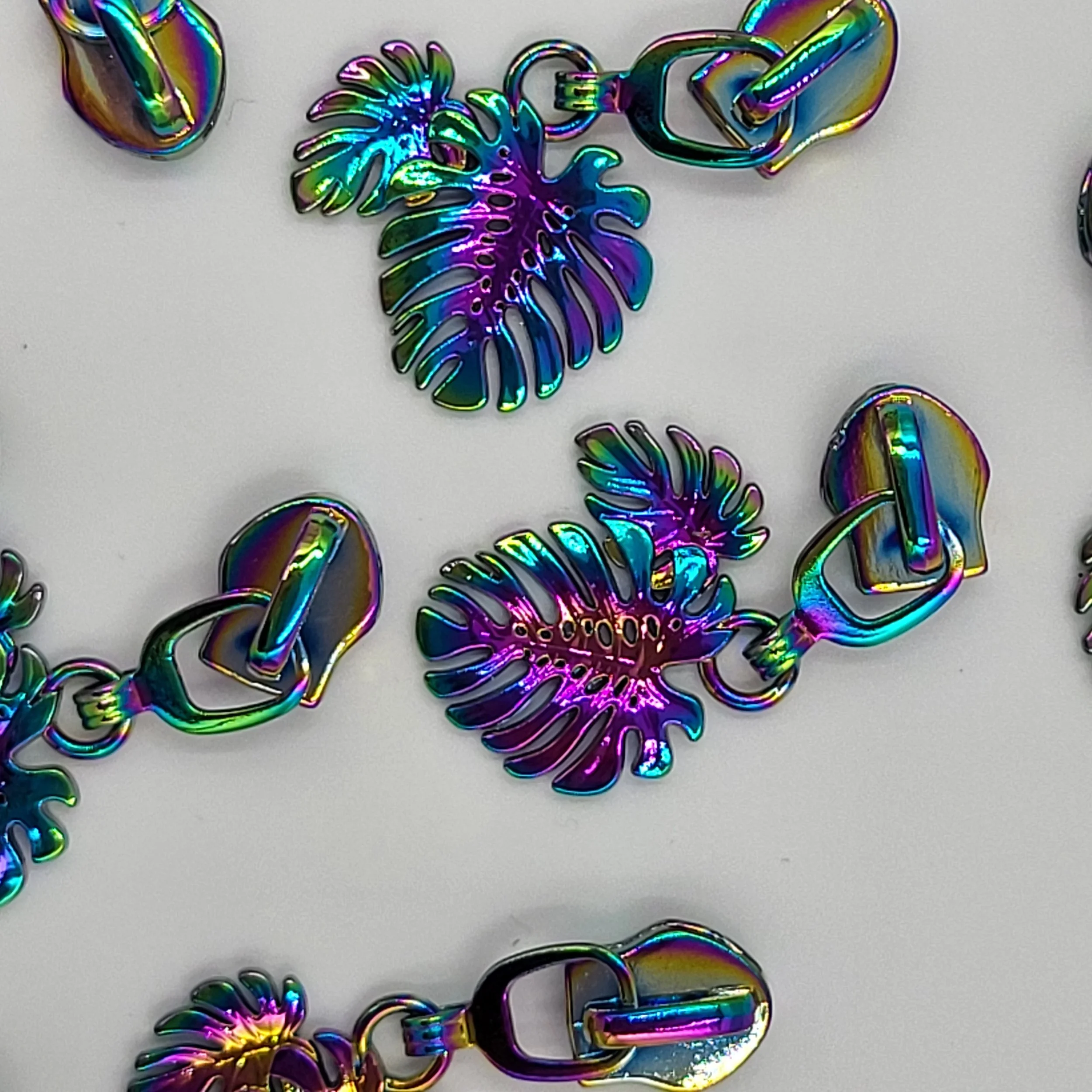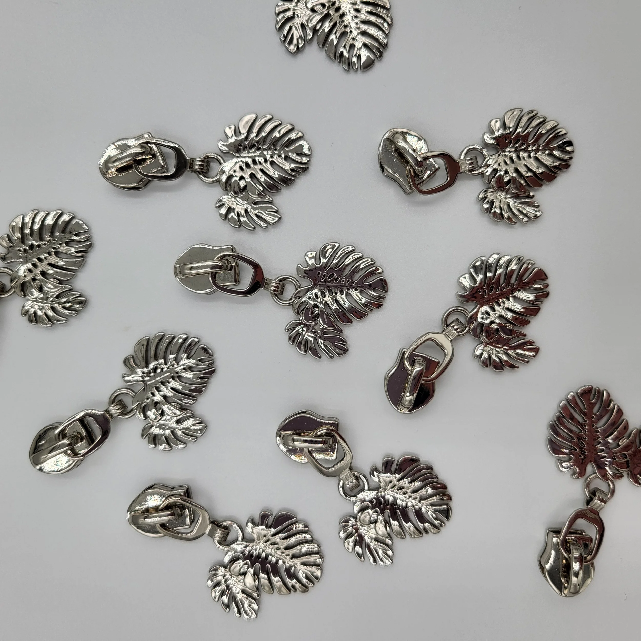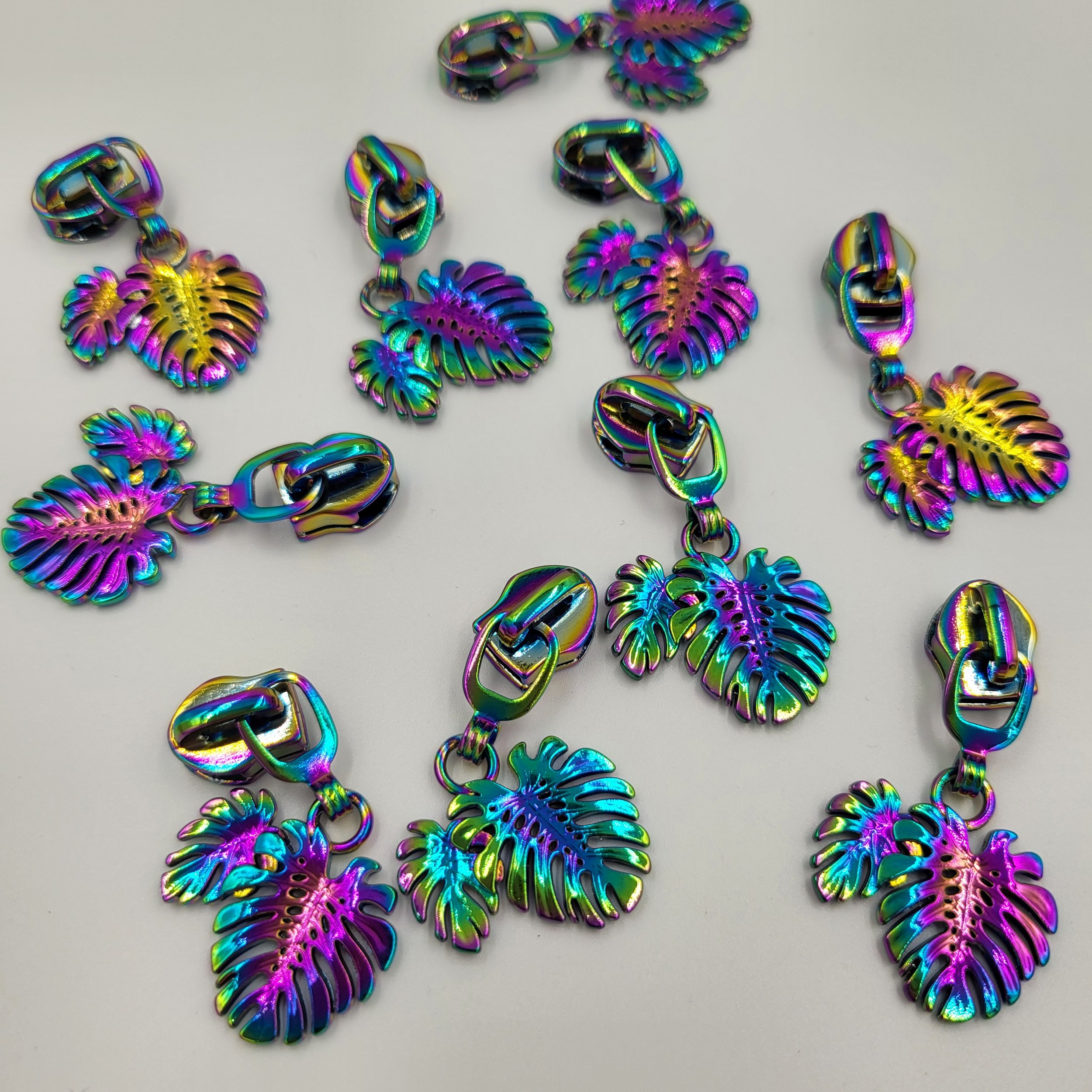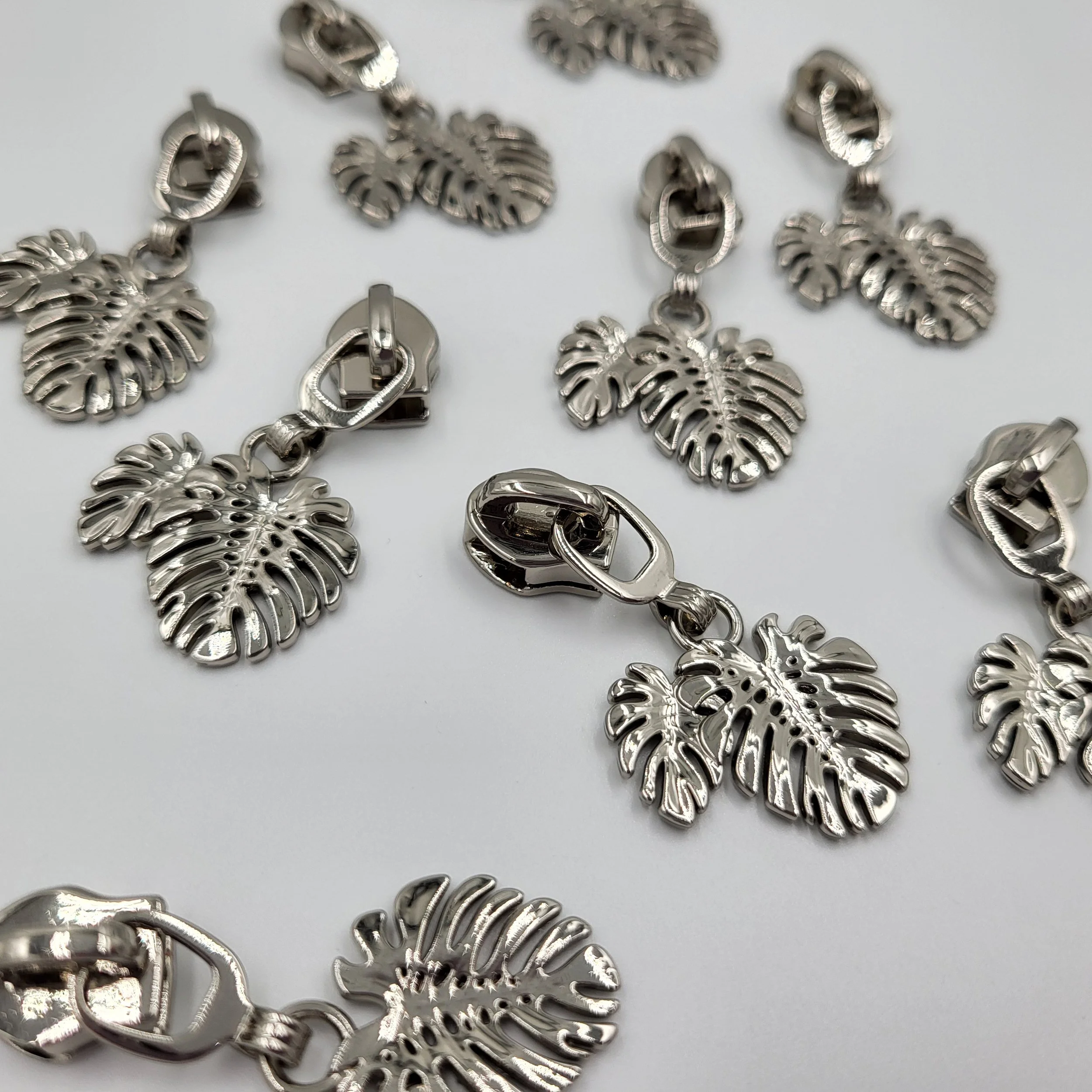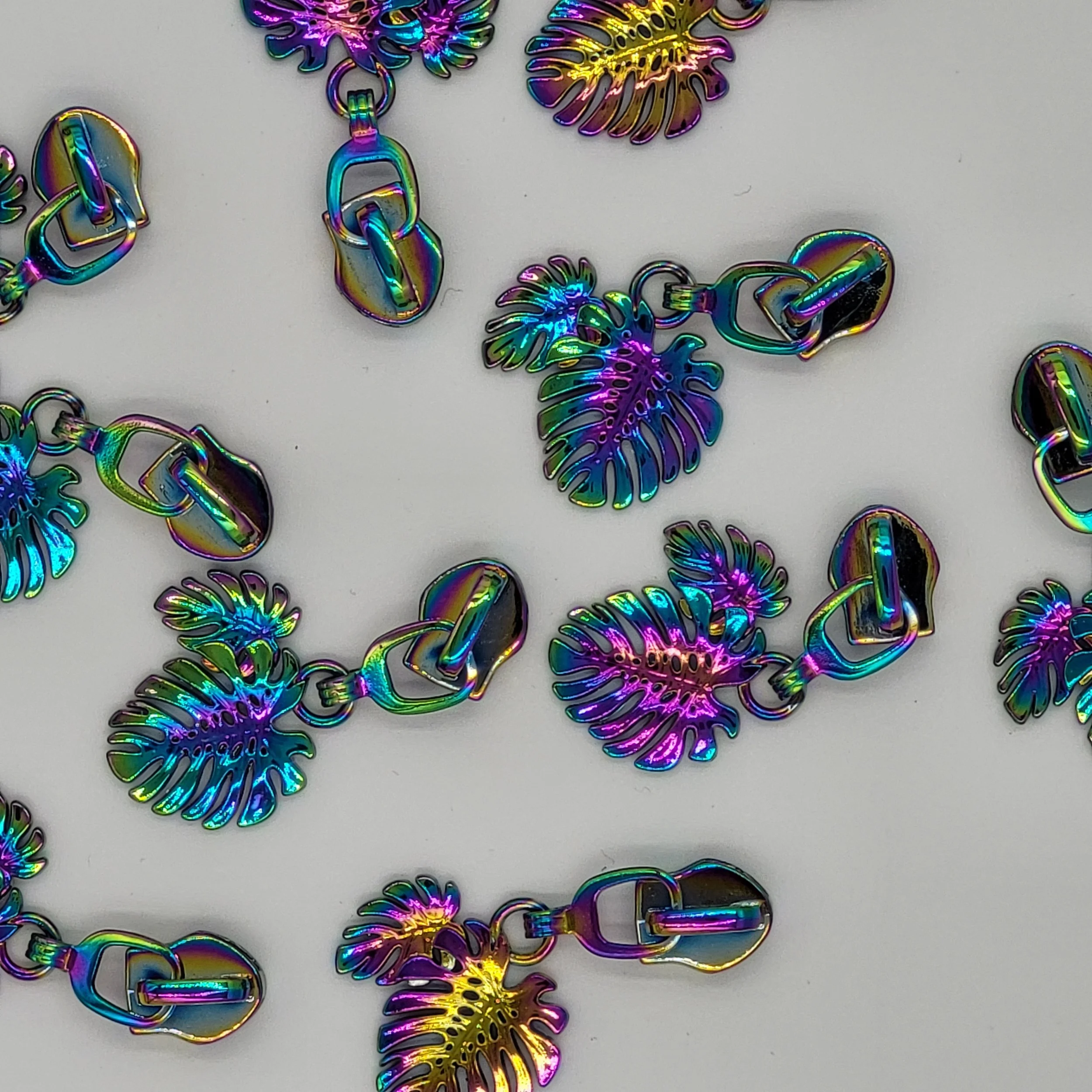 The antique brass coloured metal #5 zip pulls will work with our continuous zipper tape.